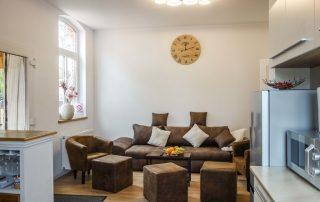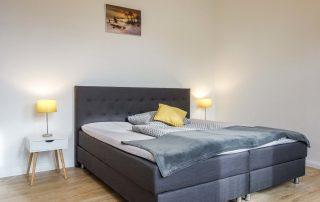 Mit einer Fläche von 140m² aufgeteilt auf vier Schlafzimmer mit auseinanderziehbaren Doppelbetten und jeweils eigenem Smart-TV, zwei Badezimmer und einer geräumigen Diele samt Wohnküche und kleiner Bar sowie einer gemütlichen Sitzecke inkl. Schlafsofa, bietet die Business-Unterkunft Platz für bis zu 9 Geschäftsreisende. Sie wurde 2022 komplett renoviert und neu eingerichtet.
